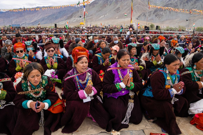 穿著創痛服飾的桑斯卡爾民眾前來聆聽達賴喇嘛尊者傳授佛法。