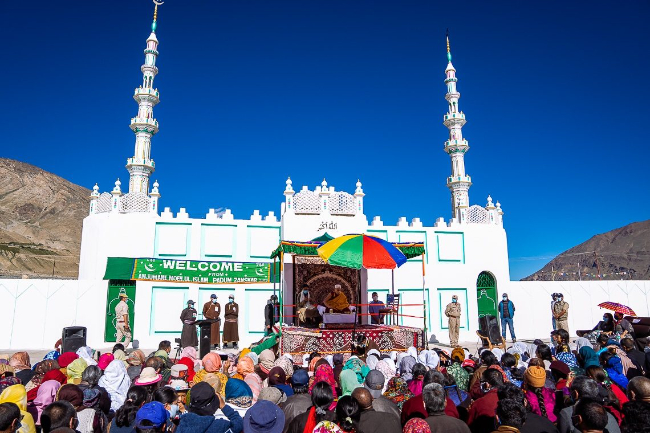 8月12日,達賴喇嘛尊者在拉達克桑斯卡爾地區法會廣場為一萬多名信眾傳授佛法。