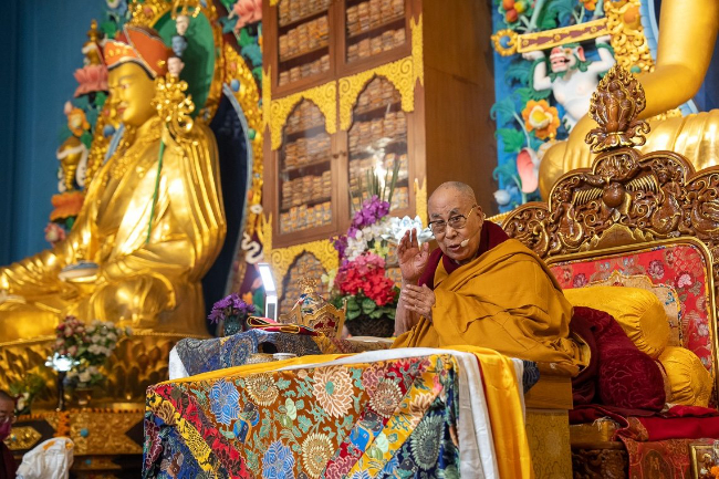 達賴喇嘛尊者在南卓林寺院大經堂點燃酥油燈祈福