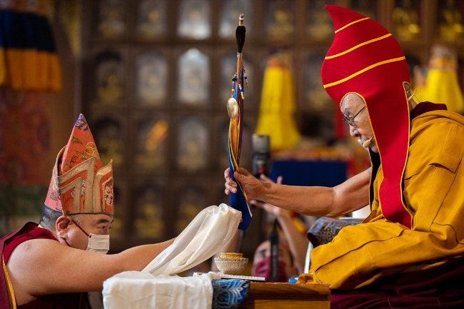 雪謙冉江仁波切代表舊譯寧瑪派向達賴喇嘛尊者獻上長壽供品