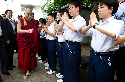 25日達賴喇嘛尊者應邀前往東京世田谷學園參訪,學生代表列隊歡迎尊者的到來。