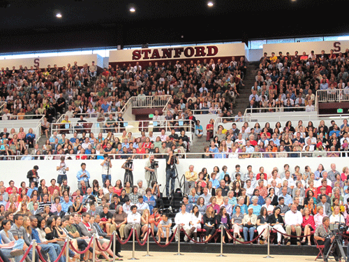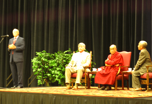 斯坦福大學校長致詞歡迎達賴喇嘛尊者在該校巨蛋體育場發表公開演講