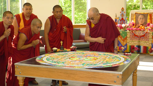 達賴喇嘛尊者在阿肯色大學加持由哲蚌洛色林僧眾製作的彩沙壇城