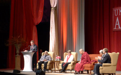 近一萬名阿肯色大學師生聆聽達賴喇嘛尊者的演講 |