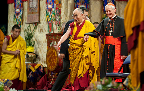 7月14日,華盛頓特區前樞機大主教麥卡里克前來法會現場,歡迎達賴喇嘛尊者訪問華府