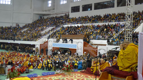 8日下午,達賴喇嘛尊者在烏蘭巴托小巨蛋體育館開始講授佛法