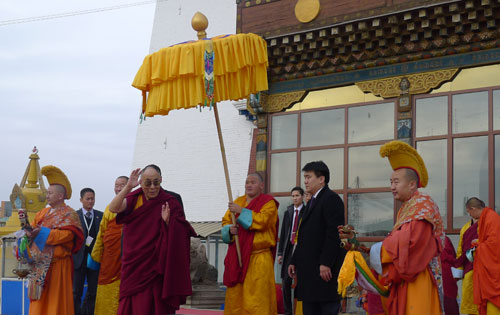 達賴喇嘛尊者結束蒙古的所有行程向民眾道別 (應用圖片,請註明達賴喇嘛辦公室中文網站) |