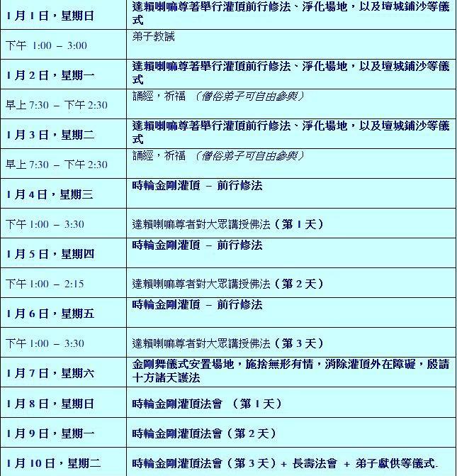 第32屆時輪金剛灌頂法會日程安排 2011/12/22