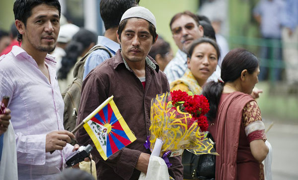 藏人穆斯林民眾手持哈達歡迎達賴喇嘛尊者的到來