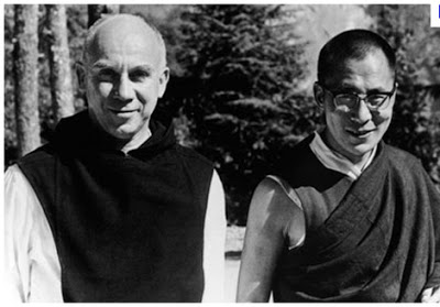 托馬斯·梅頓與達賴喇嘛尊者(1968) 10月20日,梅頓到達印度加爾各答。他在這裡參加了一些宗教活動,並與以“狂慧”著稱的秋陽創巴仁波切見面。24日,他收到達賴喇嘛的秘書發來的電報,通知他說,他與達賴喇嘛的會面定於11月4日。10月28日,梅頓從加爾各答飛向新德里。11月1日,他由達賴喇嘛的學生Harold Talbott陪同,乘火車前往達蘭薩拉。沉沉夜色裡,火車穿過平原,進入山區,天亮時,梅頓看到印度北方美麗的山野田園。從火車站到達蘭薩拉約三小時車程。梅頓發現自己來到一個非常美麗的地方,那裡山高谷深,天邊有一道令人肅然起敬的白色山嶺。梅頓在松樹林裡散步沉思,一群猴子在林中嬉戲,乌鸦在山谷里啼鸣,蝴蝶翩翩飞舞。 可是,這個美麗的地方卻住在一群背井離鄉,一無所有的西藏難民。他們在山坡的大樹下支起帳篷,權且棲身。他們有的在修路,有的在蓋房,蓋房子的難民們一邊幹活,一邊唱着動聽的歌。即使在極端艱苦的環境中,這些人依然堅持宗教修持。他們手拿念珠,一遍又一遍繞著佛塔或經堂環緩步而行。一天,梅頓在山路上獨行,忽聽身後傳來“奇怪的聲音”。一個藏人從他身邊走過,一邊走,一邊發出長長的“Om---”音。 那是一個遠古的聲音,它融入寧靜的山野,彷彿直接來自岩石,又像是發自他的生命本原。 Harold Talbott回憶說,雖然訂好了與達賴喇嘛見面的日期,但梅頓並無期待,而且有意取消,因為他“已經見夠了各種各樣的教主”,無意與“中亞梵蒂岡”的大人物們交往。然而,梅頓外出拍照時,在一條小路上與達賴喇嘛的英文翻譯索南喀次不期而遇。索南喀次是錫金人,他因病去西藏求醫,卻遇到了幾位藏傳佛教寧瑪派高僧,得以修習佛法。索南喀次不僅對佛教理論有相當的了解,對藏傳佛教的實修也有較深的體驗。更重要的是,他可以用英語表述。兩人站在小路上聊起藏傳佛教,一番談話後,梅頓改變了心意。 1968年11月4日下午,梅頓前往馬克利奧德甘吉訪問達賴喇嘛。在達賴喇嘛新建的住處,53歲的天主教靈修大師與32歲的藏傳佛教領袖初次見面。在梅頓的記錄裡,達賴喇嘛高大健壯,精力充沛,熱情大度,是個“令人印象極其深刻的人”。他們討論宗教和哲學,話題完全無涉政治。那是西方社會接觸藏傳佛教的初期,一些佛教僧侶初來乍到,在開放自由的西方社會,也有舉止失措的現象,違背了佛教寺院的嚴格戒律,使得原來對“會飛的喇嘛”將信將疑的西方人頗為失望,對藏傳佛教整體產生了一些片面的看法。梅頓注意到,達賴喇嘛對此十分敏感。 两天后,他們再次見面。梅頓在那天的日記裡記下了談話的基本內容。他提到,當他們談起佛教的靈修時,達賴喇嘛當場盤膝坐在地板上,為他解說藏傳佛教的打坐姿勢。幾十年後,Harold Talbott憶起這一場面,依然感到不可思議。 在達蘭薩拉,梅頓與達賴喇嘛有過三次交談。他們交流寺院生活與修道院生活的經驗,梅頓向達賴喇嘛請教佛教基本修行方法,達賴喇嘛向梅頓請教天主教靈修方面的問題。他們的討論是一次相當有意義的宗教對話,可惜梅頓沒有留下更詳細的內容。他在日記裡寫下了自己的感想。他感到自己對達賴喇嘛產生了極大的敬意和好感,相信他們之間有種精神上的聯繫。 兩人都對對方相當讚賞,達賴喇嘛稱梅頓為“天主教格西”。 初次访问达赖喇嘛前,索南喀次帶梅頓拜访高僧措林仁波切。這次會面中,措林仁波切做了一件令人驚異的事:他沒有跟梅頓討論輪迴、轉世、怎樣離苦得乐等佛教基本理論,也沒有講述自己的修行經驗,而是直接教給他一個“很有用的”修練方法:破瓦法(phowa)。“破瓦法”也叫“遷識法”,是藏傳佛教中的高級修練法,通常必須有多年修練基礎才能修習。根據密宗理論,“破瓦法”修成後,頭頂的“梵穴”會打開,當人命終之時,“神識”會通過“梵穴”離開身體,往生淨土。 1968年12月10日,在泰國參加會議期間,梅頓不幸觸電身亡。這一天,恰是梅頓走進克西瑪尼修道院,成為天主教僧侶的27週年。 次日,梅頓的遺體被送到美國在曼谷的空軍基地,與越戰陣亡士兵的遺體一同運返美國,安葬在克西瑪尼修道院教堂邊的墓園中。 達賴喇嘛:從東方走向西方 梅頓走向達蘭薩拉,他所要了解和探尋的,正是中共要摧毀的。1968年是文革高峰期間。這場運動從“破四舊”開始,在此期間,一切代表“封、資、修”的東西,都屬於被“破”之列。佛教文化被認為是“封建思想”的代表,在“破四舊”運動中首當其衝。 從1958年至1968年,藏傳佛教在短短十年中遭受了兩度浩劫。至此,傳統西藏三區中幾千座寺院幾乎悉數被毀,傳承數千年的藏傳佛教遭到滅頂之災。 保留西藏文化和藏傳佛教的歷史重擔,落在了8萬流亡藏人和他們的年輕領袖肩上。至1968年,流亡藏人已經基本被安置在印度、尼泊爾、錫金和不丹的西藏難民定居點中。在印度政府和國際慈善機構的幫助下,流亡藏人建立起學校和寺院,在極其困難的條件下,延續文化和宗教傳承。作為藏民族的政教領袖,達賴喇嘛面臨的挑戰之一,不僅是保留民族文化,還要把古老的藏文化帶進現代社會。為此,他推動了一系列改革,包括寺院教育方面的改革。典型事例之一,是將西方哲學引入寺院教育中。 達賴喇嘛對其他宗教並非全然陌生。歷史上拉薩一直有一個不大的穆斯林社區,還有一座清真寺。 達賴喇嘛少年時曾閱讀過藏文版《聖經》,