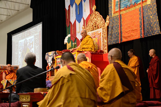 5月14日,達賴喇嘛尊者在威斯康星州麥迪遜市為佛教信眾講授宗喀巴大師的“緣起讚”