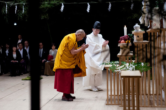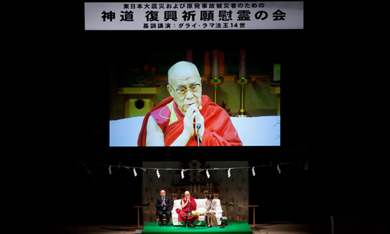 4月7日,達賴喇嘛尊者蒞臨日本東北最大的城市宮城縣仙台市,參加神道教的地震災區祈福儀式。