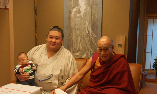 蒙古裔日本相撲明星覲見達賴喇嘛尊者。