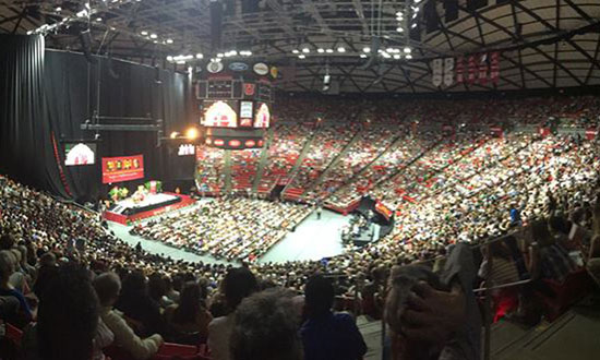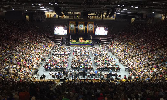 6月26日下午,6500多名來自印第安納各地民眾聆聽了尊者「慈悲~世界和平的基石」的演說。