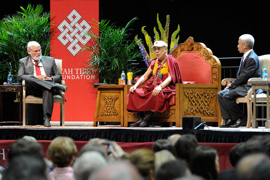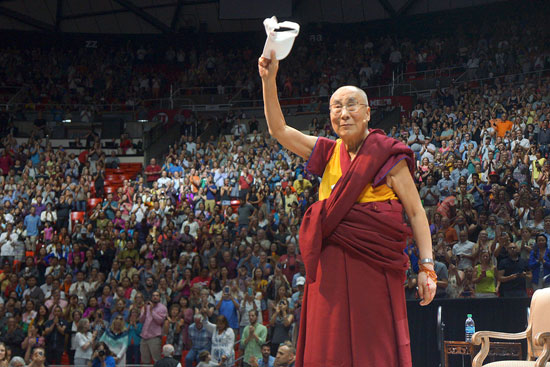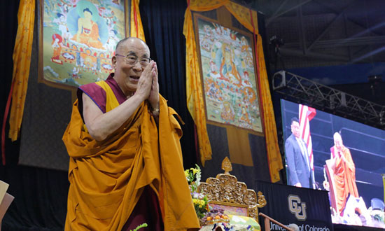23日下午,尊者應科羅拉多大學邀請,在博爾德市庫爾斯活動中心發表主題為「心和精神的教育」,9000多名聽眾共襄盛舉。