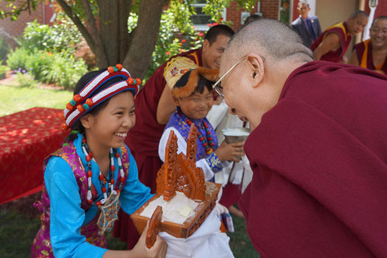 6悅24日,印第安納州的當地藏人以傳統禮儀迎請達賴喇嘛尊者蒞臨。